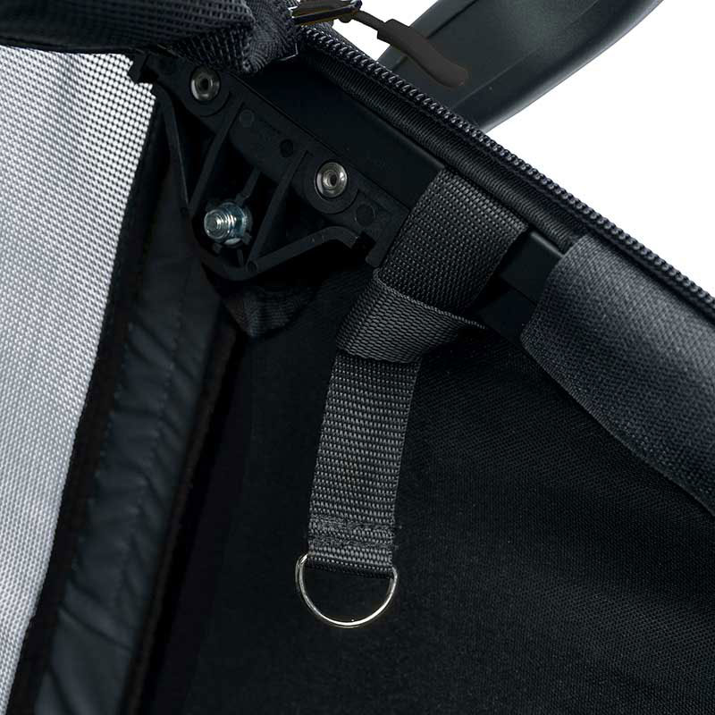 Für den optimalen Fahrkomfort hat der Hundeanhänger eine dreistufig einstellbare Federung.